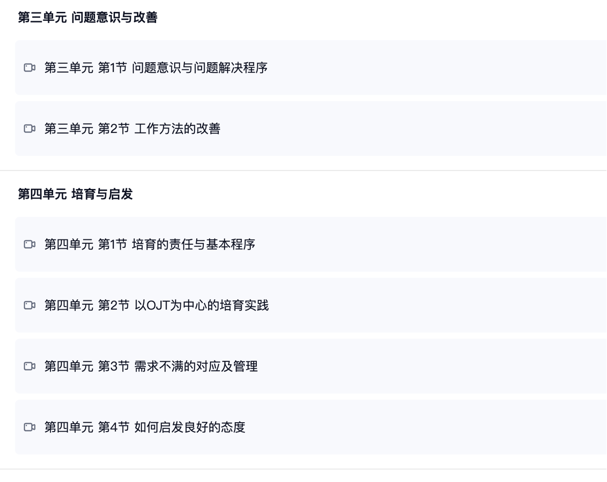 线上训练营课程章节