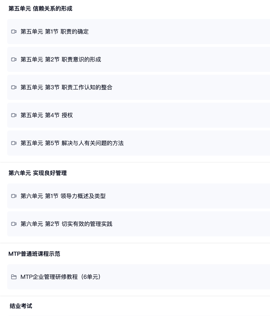 强化内部管理培训体系,支持人才梯队培养:学会如何将 MTP 内化为企业长期管理培训模块,打造管理内训师队伍,实现对中层、基层管理者的持续赋能,人才梯队建设。