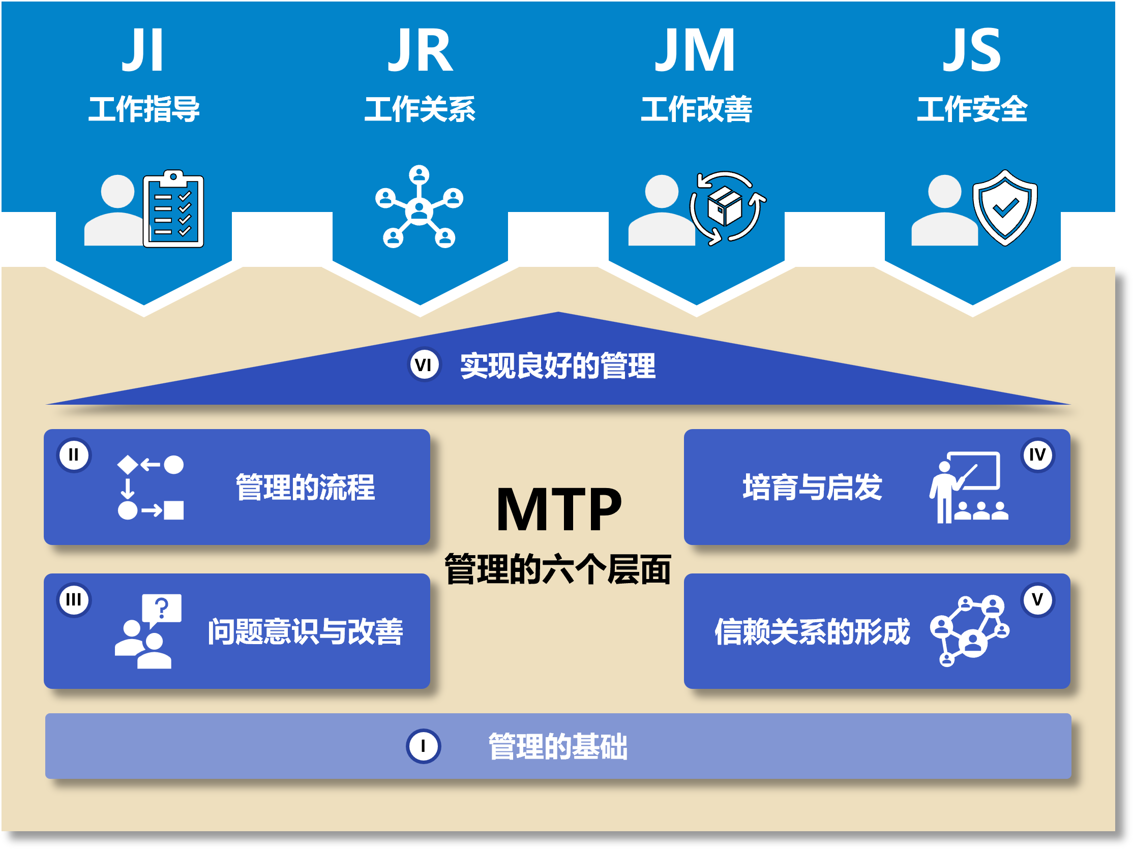 TWI-MTP提供了一个系统性的基础管理框架,涵盖了企业管理的关键领域。它帮助管理者理解和应对各种管理挑战,包括人员管理、问题解决、领导力发展等方面。